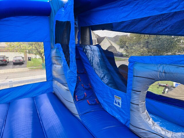 Double your fun with a Bounce and a Slide. This Slide can be used Wet or Dry. Bounce area has a non slip bouncing surface for added safety when using as a wet slide. Unit also comes with a basketball hoop on the inside. Climb up the ladder and zoom down the enclosed slide with a platform height of 8 feet.